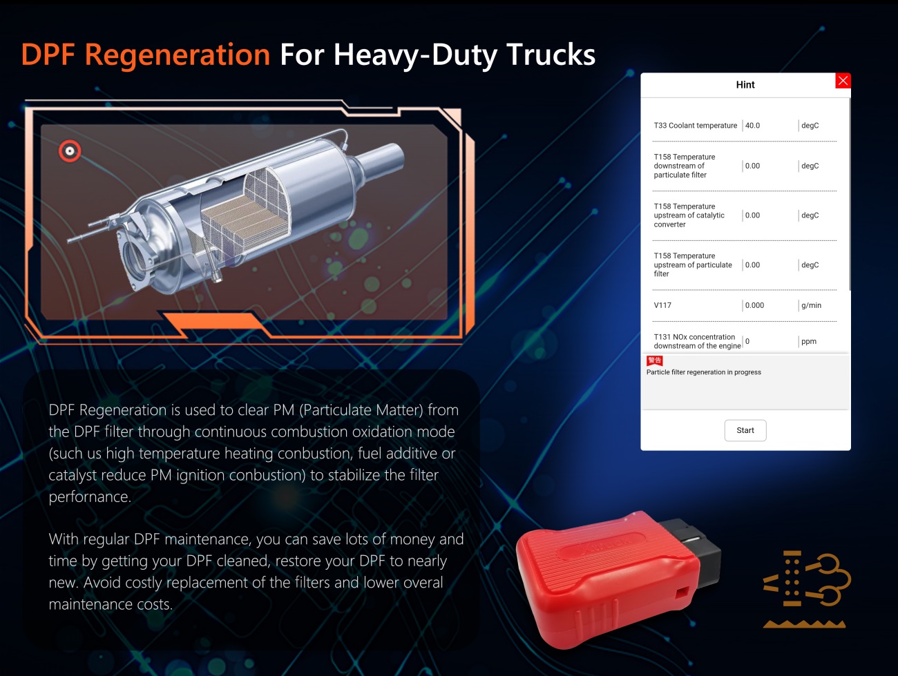 ![Xtruck X003 Force DPF Regeneration ecu programming tool Read fault code Heavy Duty Truck support Cummins VOLVO and SCANIA Truck Diagnostic Tool]()